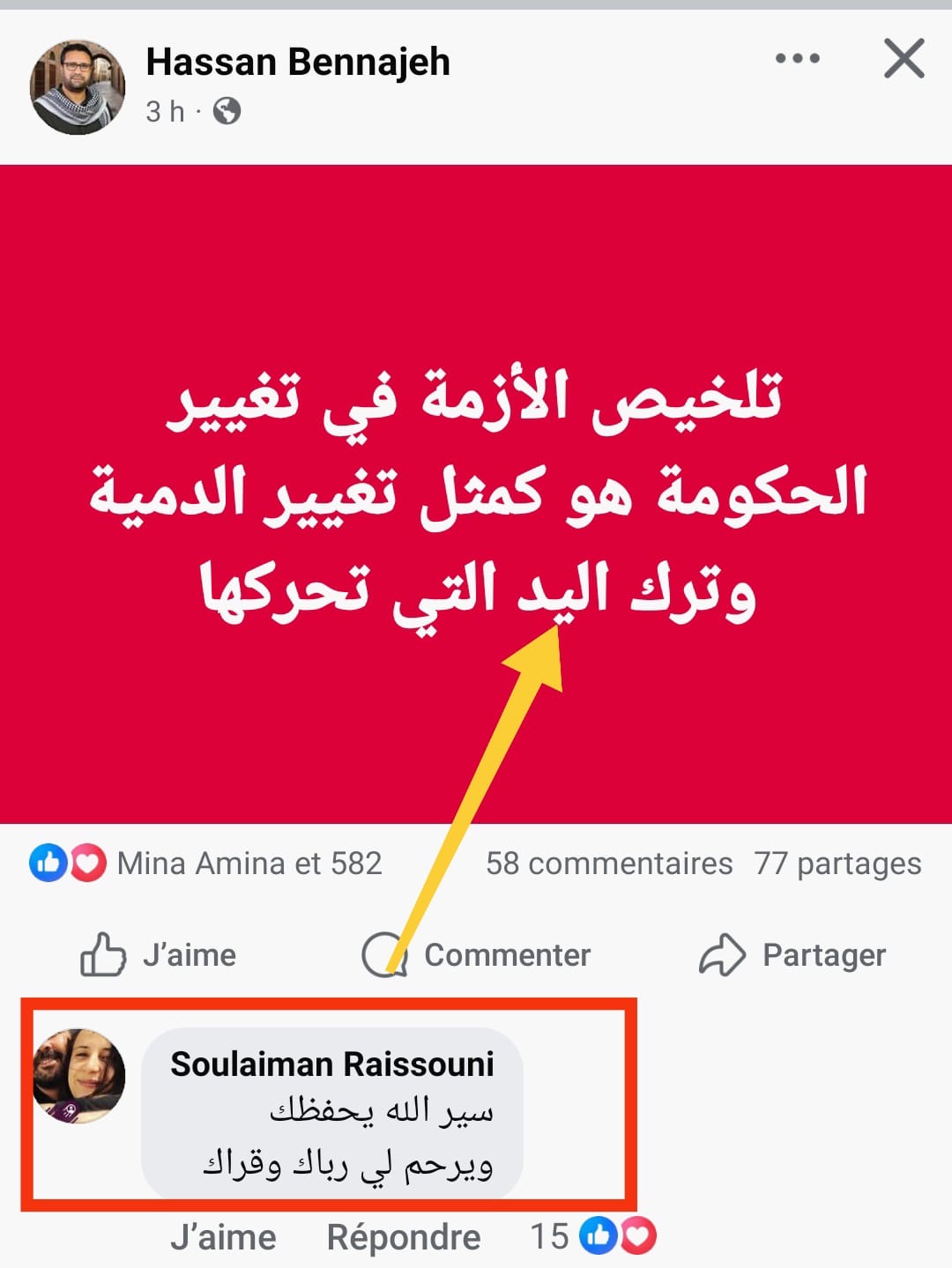 هاد النخبة كتشد المطالب المشروعة، بحال إصلاح التعليم والصحة، وكديرها غطاء باش تدوز رسائل سياسية مدسوسة؛ رسائل موجهة مباشرة للقصر، وكاتبرّأ فالوقت نفسه الأحزاب والحكومات اللي كانت، وكتبرّأ حتى راسها اللي كانت جزء من عصابة الفساد.