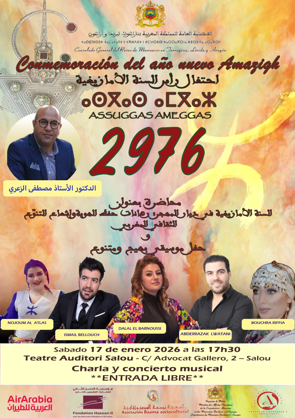 في خطوة تعكس حرص الدبلوماسية المغربية على تعزيز الروابط بين مغاربة العالم ووطنهم الأم، وتجسيداً لغنى الهوية المغربية المتعددة الروافد، نظمت القنصلية العامة للمملكة المغربية بتاراغونا، بشراكة مع جمعية “بصمة” السوسيو-ثقافية، حفلاً بهيجاً بمدينة “سالو”، تخليداً لرأس السنة الأمازيغية الجديدة 2976.