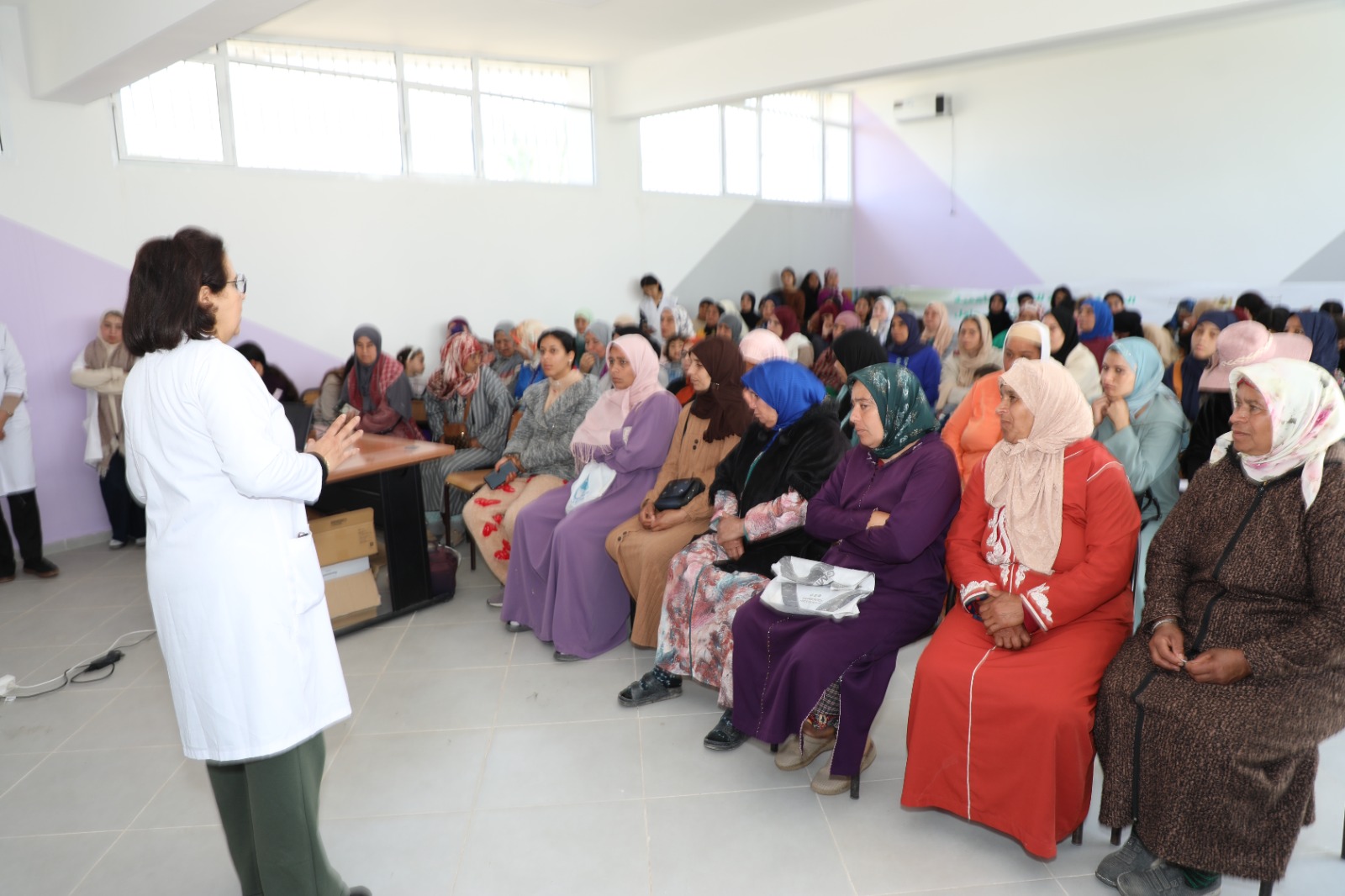 وتشكل هذه اللقاءات التي يتم تأطيرها من طرف أطر تابعة لمصالح المندوبية الإقليمية لوزارة الصحة والحماية الاجتماعية بتنسيق مع أطر قسم العمل الاجتماعي، مناسبة لدعم وتوعية الأسر وتحسيسهم بمجموعـــــة مــــــــن السلوكيات والممارسات الواجب اتباعها والمرتبطة بصحة وتغذية الأم والطفل والرضاعة الطبيعية المثالية والتغذية التكميلية وتطبيق الألف يوم الأولى من حياة الطفل.